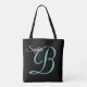 Personalize Monogram and Name on a stylish design with white and light teal script lettering on black background.