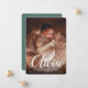Let baby's name take centre stage with these elegant birth announcements, featuring a vertical photo with baby's first name overlaid in white calligraphy script lettering. Personalize with baby's middle and last name and birth stats beneath, and add an additional photo to the back, along with a personal message.