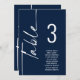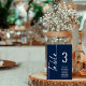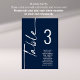 Script Navy White Table Number Names Seating Chart. Edit you number for each table and add to your cart separately. Same design is on both sides, use for a hanging display so guests can find their seat or on each table. In classic navy blue with white writing. Easily personalise the table number and your guest names. The same design is on both sides and will update simultaneously as you change the words to your own.