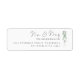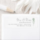Script Newlyweds Eucalyptus Return Name Address. Mr and Mrs is in an informal handwriting style set script and your name and address are below and aligned to the right. Watercolor green euca;ptus leaves run down the right hand side.