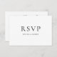 Carte RSVP faite pour les Mariages et Occasions musulmans islamiques. Carte couleur blanche simple avec une police de caractères noir classique. Une typographie élégante. Moderne. Minimal. Formellement. Les mots "gentiment répondre" sont écrits dans une police stylée au milieu. Cette carte de réponse peut être personnalisée par vous à l'aide de l'outil de conception. Il est écrit accepte avec plaisir, malheureusement déclins et total participation avec un trait sur la gauche. Vous pouvez modifier les noms du couple sur ce modèle imprimable. Enveloppe blanche vide.