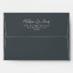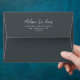 Chic, modern and simple wedding return address envelope with your names in white elegant handwritten script calligraphy on an off-black background. Simply add your names and address. Exclusively designed for you by Happy Dolphin Studio. If you need any help or matching products please contact us at through our store chat. We're happy to help you make your wedding the most beautiful day!