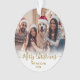 Script Gold Minimaliste Moderne 2 Photo Joyeux Script de Noël Carte d'ornement de Noël. Ce modèle festif, simple minimaliste, fantasque deux photos de vacances carte de voeux avec nom de famille, année et un texte de bienvenue "Joyeux Noël" qui est écrit dans une lettre tourbillonnant à la main police swash-tail or calligraphie script superposition photo sur dégradé blanc. Jolie carte de voeux pour votre famille et vos amis pendant la période de Noël.