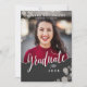 Script Photo Graduation Party Invitation with the grad's photo on the front and a second graduate photo on the back. Scripted word Graduate and silver shimmer hexagon shapes make this grad invitation elegant and chic.Celebrate your grad in style with these elegant graduation invitations.