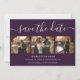 Elegant purple wedding photo save the date cards with modern calligraphy. Easily personalize this card with your images and wedding details including a wedding website if applicable. Customize to any colour.