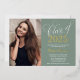 Elegant sage green and gold photo graduation party invitations to celebrate your big day. A great choice for a high school senior graduation, college graduation or graduation party.