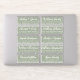 Easy to personalize, names and addresses / individual wedding address label stickers for guest invitations. These chic, modern and stylish wedding address labels feature your wedding guest names in white elegant handwritten script calligraphy on a sage green background. Simply add your individual wedding guest names and address. Exclusively designed for you by Happy Dolphin Studio.