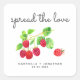 The tag features a watercolor image of raspberries with the quote spread the love in a whimsical handwritten script