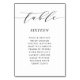 Script Table Number Wedding Reception Card S105