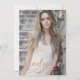 Rose gold script overlay two photo graduation announcement. Photo credit DzeeShah via Pixabay licensed under CC0. Template images must be replaced with your own photos