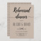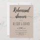 Cursive script ctypography kraft paper rustic wedding rehearsal dinner invitation. The back includes a black and white geometric pattern on brown kraft style paper.