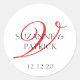 V Script Monogram With Names And Date Stickers (Red / Black / White)...These elegant, chic, and modern stickers are the perfect way to thank your friends and family for attending your wedding and sharing your special day with you. Great for thanking friends, family, and loved ones for your bridal shower gifts, wedding gifts, bachelorette party gifts, or for just being there and supporting you during your special day. Ideal stickers to use on your wedding favours or on the bags / baggies for your candy bar / buffet. The design features a script monogram initial of your new last name as well as the names of the bride and groom and the date of your wedding / big day. See WindyCityStationery.com for our complete line of "Script Monogram" stickers in a wide range of colours. We have every letter in the alphabet available!
