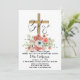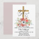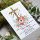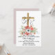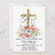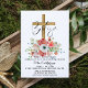 Script Watercolor Floral Cross Baptism Invitation features a simple cross accented with red, coral, blush and white flowers and greenery with your Baptism Invitation information below. Personalize by editing the text in the text boxes provided. Designed by ©Evco Studio www.zazzle.com/store/evcostudio