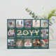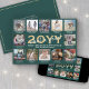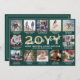 Script What a Year! 12 Photo Collage Green & Gold Holiday Card