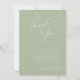Voici notre magnifique script lunatique | carte de remerciements vert sauge 5"x7" parfait pour votre simple fête moderne de printemps de boho. Notre design élégant comprend une palette de couleurs vives et pastel avec un script de calligraphie vintage et chic. Que vous préfériez un style minimaliste ou classique, notre produit éditable unique offre luxe et élégance, parfait pour créer une touche élégante et romantique qui rendra votre journée spéciale inoubliable. Contactez-nous pour toute question sur le design, et laissez-nous vous aider à faire le mariage de vos rêves.