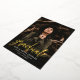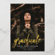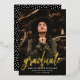 Simple graduation party invitation featuring the graduate's photo with "graduate" in real gold foil script. Personalize the front of the photo graduation party invite by adding the graduate's name, school name, and graduation year. The invite reverses to display your party details with a pattern of white sprinkles with a black background or colour of your choice.