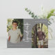 Modern scripted "graduate", arch frame 4 photo graduation announcement/invitation in silver grey.