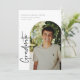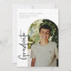 Modern scripted "graduate", arch frame photo graduation announcement/invitation.