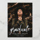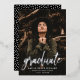 Simple graduation party invitation featuring the graduate's photo with "graduate" in real rose gold foil script. Personalize the front of the photo graduation party invite by adding the graduate's name, school name, and graduation year. The invite reverses to display your party details with a pattern of white sprinkles with a black background or colour of your choice.