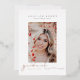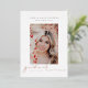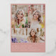 Graduate script, in foil. Graduation 4 photo announcement/invitation. Single photo on front, 3 photos on back with dusty rose pink background colour and celebration invitation details.