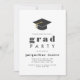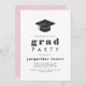 A modern Christian typographic graduation party invitation featuring a black and gold graduation cap. The party details are in dark grey, with a mix of modern serif and sans serif font. The reverse is in solid light pink and a Bible verse - "This is the Lord's doing; it is marvellous in our eyes" Psalm 118:23 in dark grey cursive and sans serif font, which can be edited.