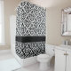 Scroll and leaf damask in a vintage style pattern, with white detail on a black background at the bottom part with the reverse of black on white at the top; with lower divisional band.
