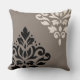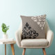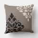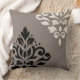 Scroll Damask Art I Black & Cream on Taupe Throw Pillow