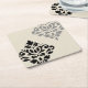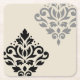 Scroll Damask Art I Black Grey Cream Square Paper Coaster
