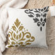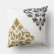 Scroll Damask Art I Gold & Grey on White Throw Pillow