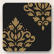 Scroll and leaf damask with gold colour detail on a black background in a modern style art print.