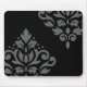 Scroll Damask Art I Gray on Black Mouse Pad