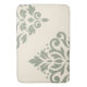 Scroll and leaf damask in a vintage style design, with green detail on a cream colour background.