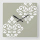 Scroll Damask Art I White on Green Square Wall Clock