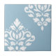 Scroll and leaf damask with white detail on a light blue background in a modern style art print.