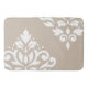 Scroll Damask Art I White on Light Taupe Bath Mat