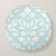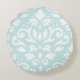 Scroll Damask Design White on Duck Egg Blue Round Pillow