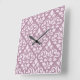 Scroll Damask Large Pattern Pink on Mauve Square Wall Clock
