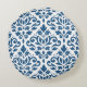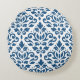 Scroll Damask Lg Ptn Dk Blue on White Round Pillow