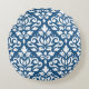 Scroll Damask Lg Ptn White on Dk Blue Round Pillow