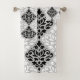 Scroll Damask Mixed Size Ptn B&W on Grey Bath Towel Set
