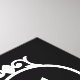 Scroll and leaf damask off-set (bottom left) design in white detail on a black background in a modern style art print with ornate circle top right with initial to personalize.