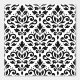Scroll and leaf decorative damask surface pattern design in black detail on a white background.