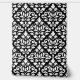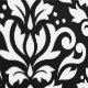 Scroll and leaf decorative damask surface pattern design in white detail on a black background.