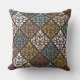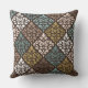 Scroll Damask Rpt Ptn Teals Browns Gold Crm White Throw Pillow