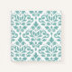 Scroll and leaf damask in a vintage influenced pattern, in teal colour detail on a background colour of your choice.