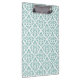 Scroll and leaf damask in a vintage influenced pattern, in teal colour detail on a background colour of your choice.