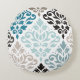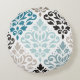 Scroll Damask XLg Pattern Art Teals Browns White Round Pillow