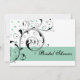 Elegant floral scroll leaf black, white, jade green flourish wedding bridal shower invitation, featuring black scroll leafs, swirls, curls and jade green dots on white background. There is a jade green band with your text to the bottom. This classy and stylish design is part of a wedding set, is completely customizable and can be personalized. Perfect for a spring wedding or summer wedding.