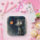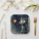 Scruffy Black Alley Cat With an Autumn Leaf Paper Plate