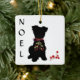 Cute silhouette of a scruffy dog wearing a festive Christmas bow